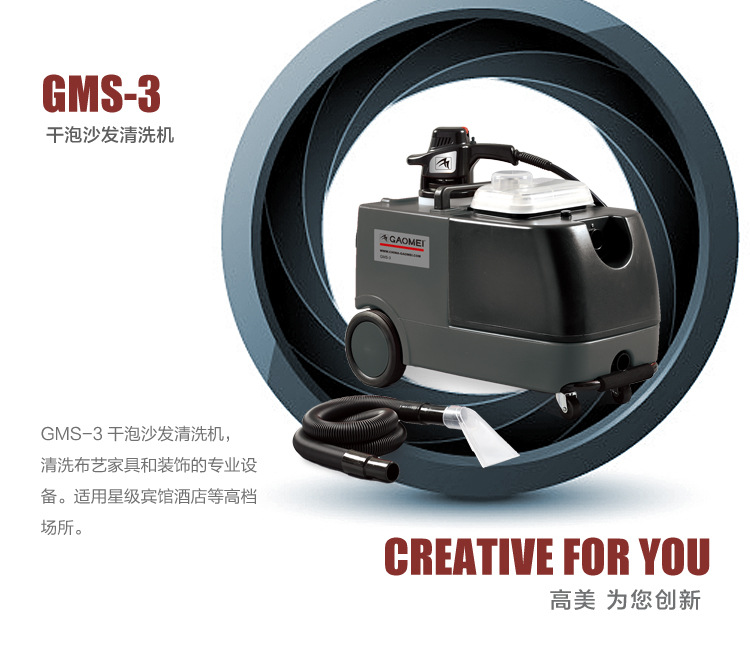 GMS-3 干泡沙發清洗機,融入專利發泡技術(ZL032212437 ),泡沫制造,電動刷洗、真空抽吸三合一,是清洗各種布藝家具和裝飾的專業設備。適用星級賓館酒店等任何******場所。