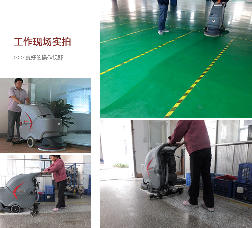 2、快捷方便:刷洗、吸干一次性完成,徹底清潔地面污垢;一個(gè)非專業(yè)員工即可操作維護(hù)。