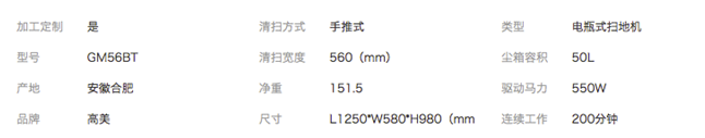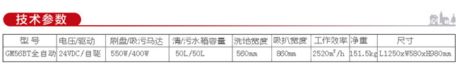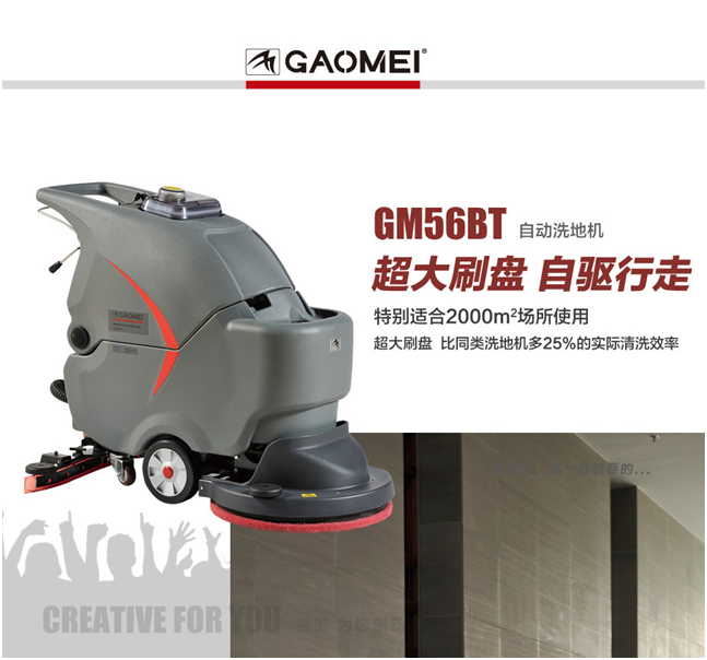 GM56BT 全自動洗地機, GM56BT 全自動洗地機,洗擦、吸干一次性完成,洗刷吸干過的地面,清潔如新,臟水、泥土、沙粒、油污統統吸入污水箱。簡化清潔工作,大大減少清潔勞累和作業時間;快速解決地板上的任何污垢,顯著提高清潔衛生質量。特別適合2000m2左右場所使用。